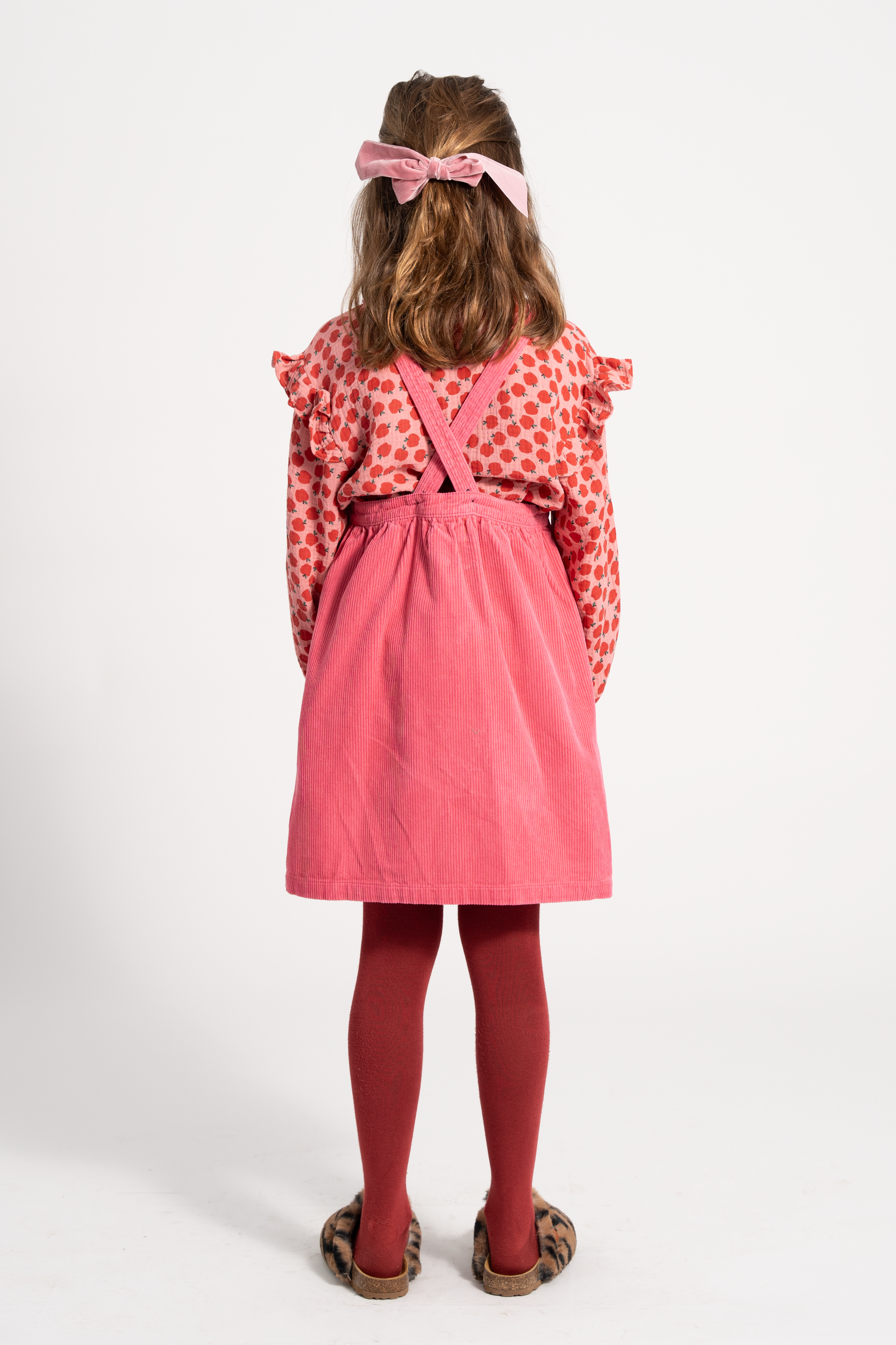 【piupiuchick】Blouse w/ frills on shoulders | Light pink w/ red apples